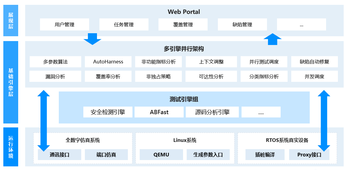 针对以上问题,结合嵌入式软件测试目标,安般科技推出了新一代嵌入式软件测试方案。该方案搭载智能化模糊测试引擎,通过基于时间切片的异构引擎融合、基于预测算法的充分性评估、多激励输入变异等相关技术,提升缺陷挖掘能力天花板;采用多种运行环境的测试技术,针对不同场景,采用不同技术,最终实现各种复杂的嵌入式场景下的模糊测试。