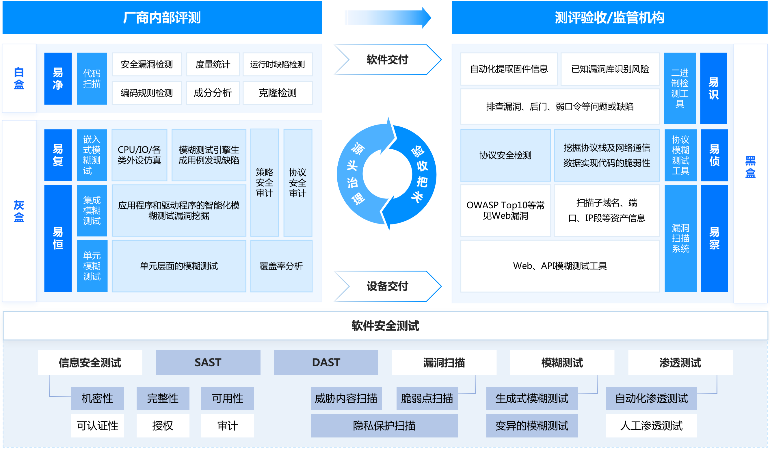 之后,汪毅还展示了嵌入式软件安全测试全景——以模糊测试为核心,联合其他类型的测试工具,共同构建软件质量安全体系,深度赋能内部测评与三方审计验收,打造高可靠安全引擎。