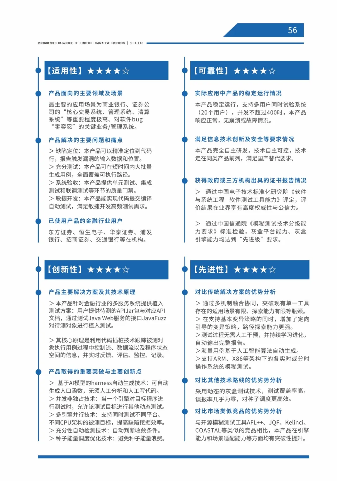 “创新监管联合实验室” 是上海金融科技产业联盟为贯彻落实《上海国际金融中心建设“十四五”规划》而专门设立的跨界金融科技创新合作平台。创新监管联合实验室开展的金融科技产品创新验证主要从创新性、先进性、可靠性、适用性、效益性、合规性六个方面进行评估,由行业专家、学术专家等专业人士对金融科技产品进行鉴别和评价。